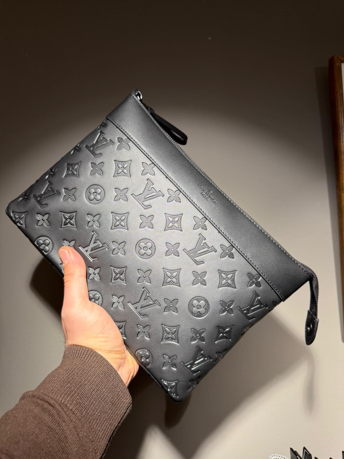 Özel Doku: Yüzeyine yüksek hassasiyetle işlenmiş, derinlikli ve net embossed (kabartma) monogram desenleri.